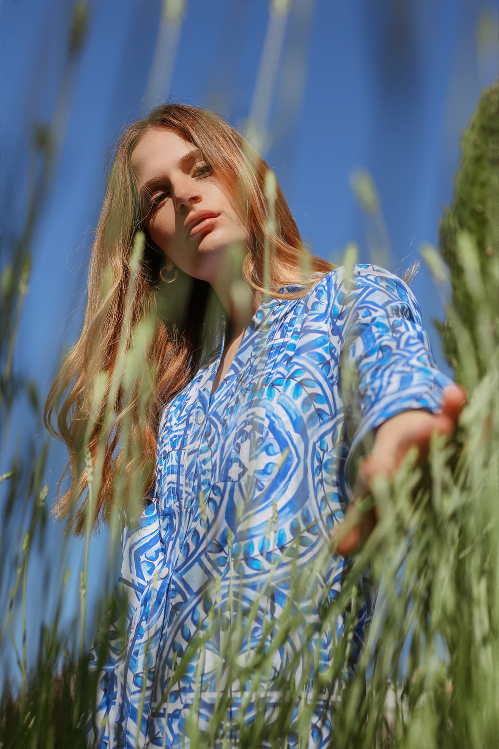 Flirt me to the Moon Shirt Remastered - Blue - Women’s Natural Fabric Shirt by unexpectedone
